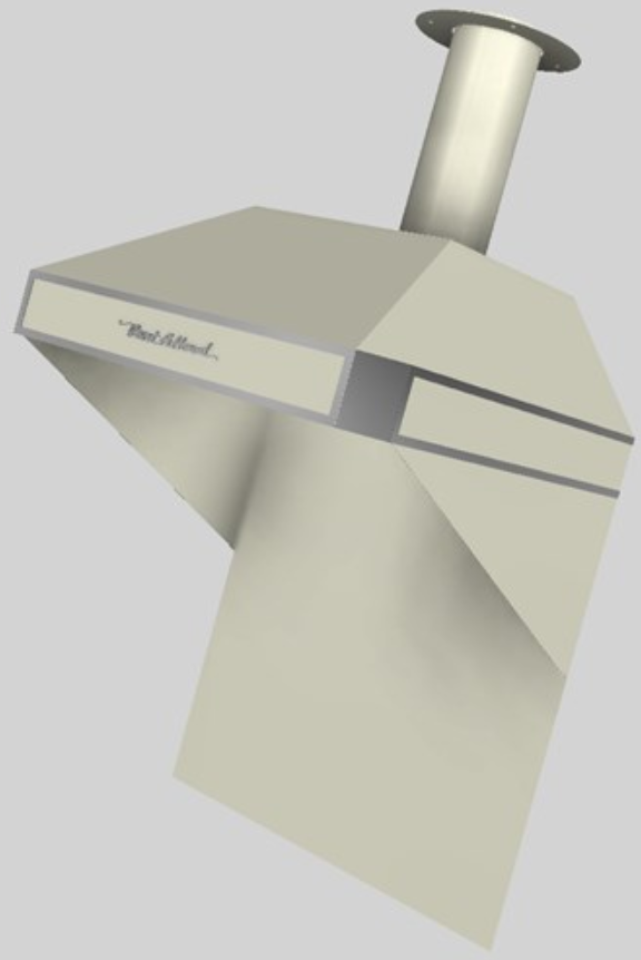 Click on the models for a list of our base model numbers for standard sizes; simply select the model you need, and then specify the finish. Available in standard and custom paint finishes (additional charges may apply). Recommended mounting height is 33" above the cooking surface. Two side wing panels and a splash panel 30" tall x the width of the hood are included; the painted round duct and ceiling collar are sold separately. All Vent-A-Hood products are suitable for use in damp locations (outdoor applications such as a covered patio) when installed in a GFCI protected branch circuit.